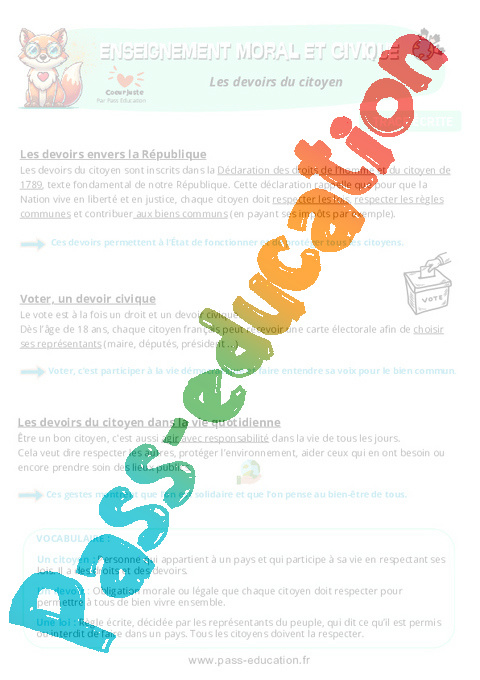 Leçon à imprimer – Les devoirs du citoyen : 5eme Primaire – EMC Education morale et civique.