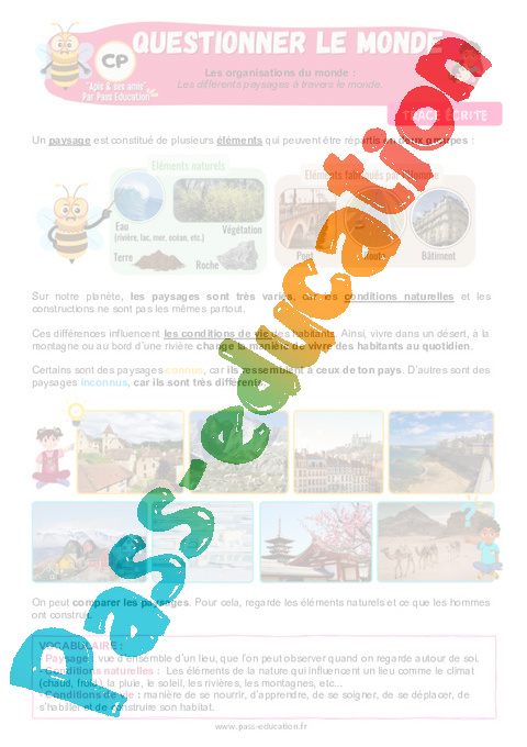 Leçon – Les différents paysages à travers le monde : 1ere Primaire – Apis & ses amis.