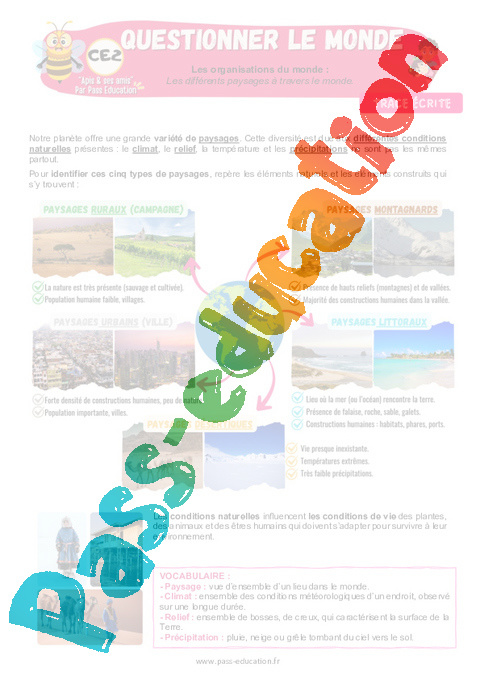 Leçon – Les différents paysages à travers le monde : 3eme Primaire – Apis & ses amis.