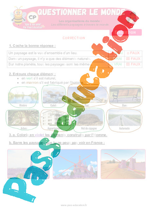 6.1 Correction Evaluation : 1ere Primaire Les différents paysages à travers le monde pdf