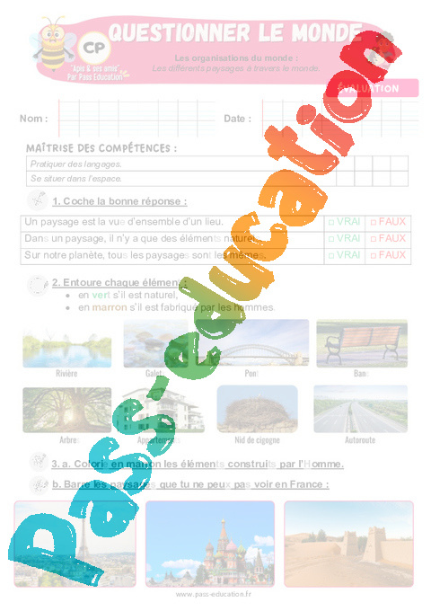 Evaluation – Les différents paysages à travers le monde : 1ere Primaire – Apis & ses amis.