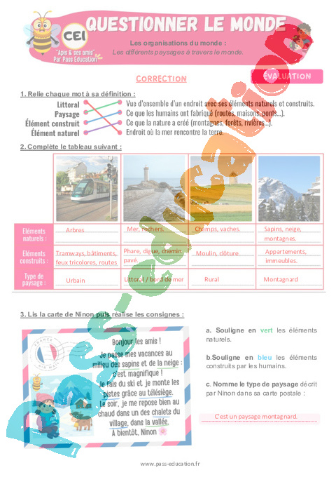 6.1 Correction Evaluation : 2eme Primaire Les différents paysages à travers le monde pdf