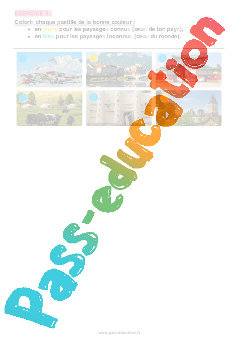 • en jaune pour les paysages connus (ceux de ton pays),