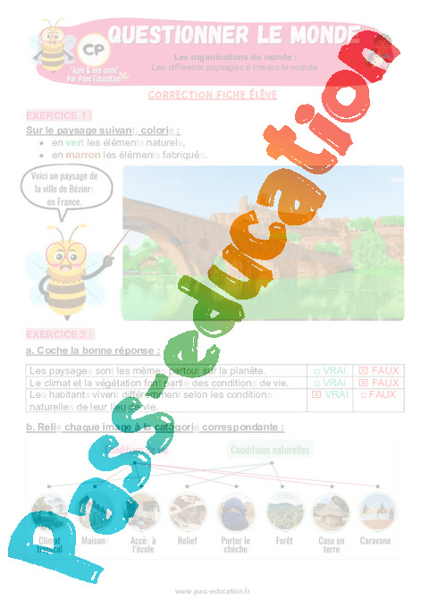 4.2 Correction Fiche Elève : 1ere Primaire Les différents paysages à travers le monde pdf