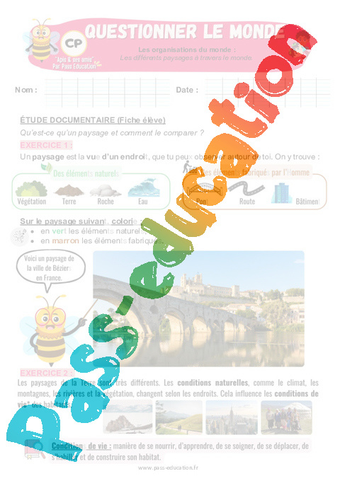 Exercices – Les différents paysages à travers le monde : 1ere Primaire – Apis & ses amis.
