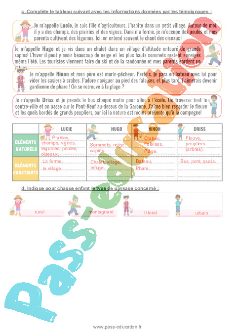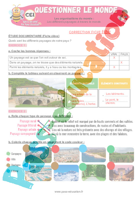 4.1 Correction Fiche Elève : 2eme Primaire Les différents paysages à travers le monde pdf