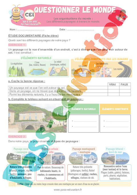 Exercices – Les différents paysages à travers le monde : 2eme Primaire – Séquence + vidéo – Apis & ses amis.