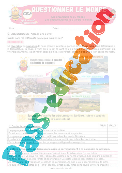4.1 Correction Fiche Elève : 3eme Primaire Les différents paysages à travers le monde pdf