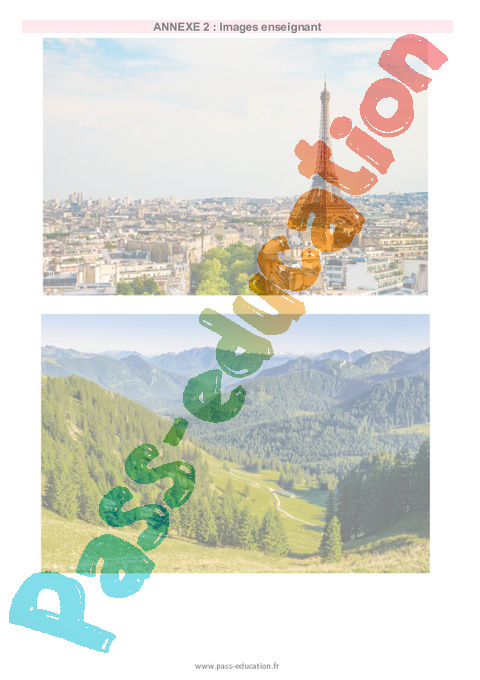 | – Voici quelques images. Ensemble, nous allons nommer ce que nous y voyons. L’enseignant présente une à une les images en grand format qu’il accroche au fur et à mesure au tableau. – « Par deux, vous allez maintenant trier ces images en plusieurs groupes : imaginez que vous devez les répartir dans quatre sacs différents. Réfléchissez bien aux images que vous pouvez mettre ensemble. » L’enseignant fait référence aux quatre colonnes tracées au tableau, avec les images aimantées au-dessous. Les élèves disposent des reproductions de ces images en petit format, et devront les disposer en 4 colonnes sur leur table. L’enseignant passe dans les rangs pour aider, favoriser l’échange entre les deux élèves, si nécessaire. | -Confrontation des classements réalisés par les élèves, l’enseignant assure l’échange oral entre les apprenants. Il prend en considération le travail des élèves et rebondit sur leurs réponses pour les amener au tri attendu. – Si aucun tri évoqué par les élèves ne correspond aux attentes, l’enseignant peut alors proposer son tri : « Vous avez fini de ranger toutes ces images. Je vais maintenant vous proposer mon tri, regardez. » L’enseignant place les images dans les quatre colonnes du tableau correspondant aux types de paysages : montagne, campagne, bord de mer et ville. – Pour nommer les colonnes, l’enseignant cherche à amener, petit à petit, les élèves à proposer du lexique qui peut s’approcher des réponses possibles : Il note tout ce que proposent les élèves dans chaque colonne. La vidéo qui suit permet d’amener une réponse à cette question et de nommer la colonne avec certitude. Pour introduire la suite de l’apprentissage sur les différents paysages en France, l’enseignant pointe 2 images représentant deux types de paysages contrastés (par exemple la ville et la campagne). Il attire l’attention des élèves sur les différences et lance la question suivante : « Quelles sont les différences entre ces 2 paysages ? » Il pourra ensuite reproduire cette démarche avec les deux autres types de paysages (montagne et bord de mer). |