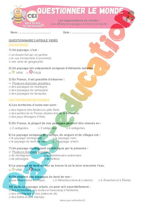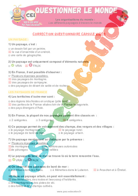 3.1 Correction QCM capsule vidéo : 2eme Primaire Les différents paysages à travers le monde pdf