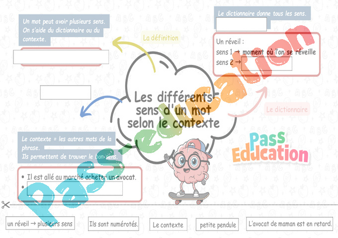 Les différents sens d’un mot selon le contexte – Carte mentale pour la 2eme Primaire pdf