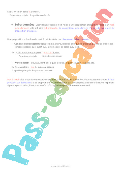 Bon à savoir : les propositions subordonnées sont parfois difficiles à identifier. Pour ne pas se tromper, il faut procéder par déduction : si les propositions ne sont reliées ni par une conjonction de coordination, ni par un signe de ponctuation, il est presque sûr qu’il s’agit d’une proposition subordonnée !