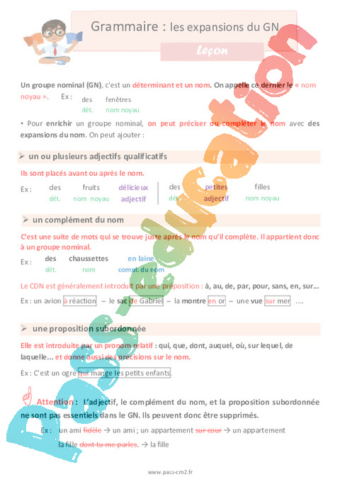 Leçon Les expansions du groupe nominal (GN) : 5eme Primaire pdf
