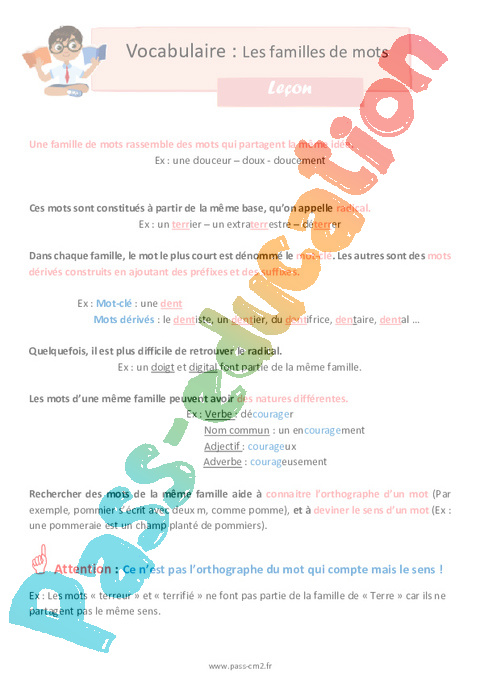 Leçon niveau : 5eme Primaire sur les familles de mots.