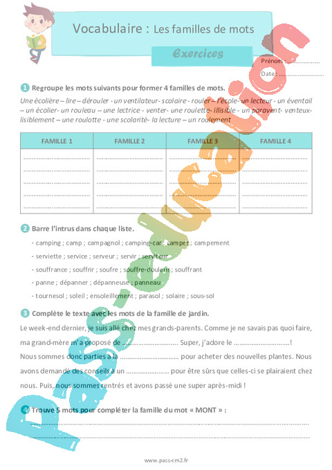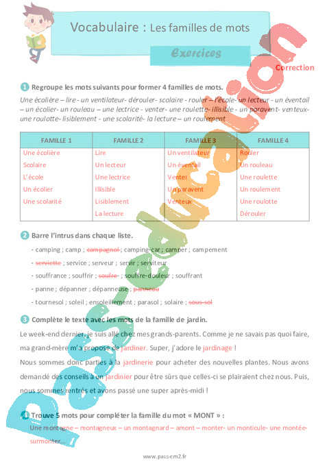 Correction Exercices Les familles de mots en 5eme Primaire rtf