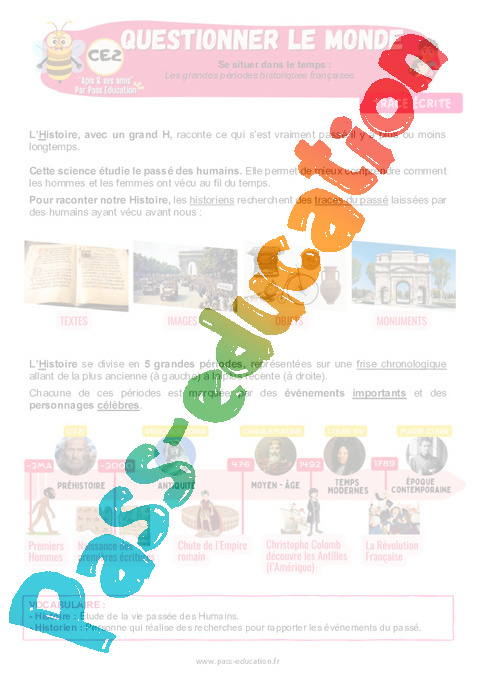 Leçon – Les grandes périodes historiques françaises en 3eme Primaire – Apis & ses amis : Questionner le monde.