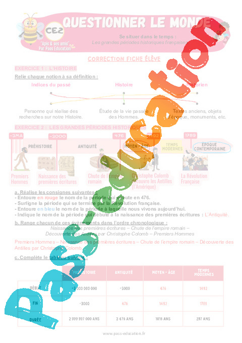 4.1 Correction Fiche élève : 3eme Primaire Les grandes périodes historiques françaises pdf