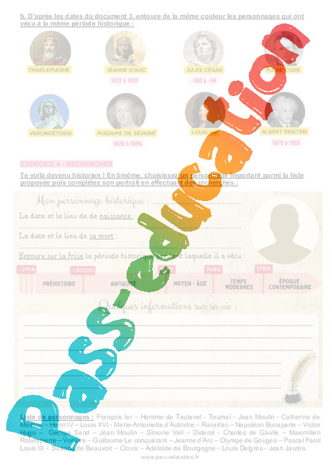 b. D’après les dates du document 3, entoure de la même couleur les personnages qui ont vécu à la même période historique :