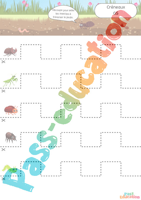 Les insectes – Créneaux – S’entraîner à découper pour mieux maîtriser le geste graphique, un premier pas vers l’écriture en : 3eme Maternelle .