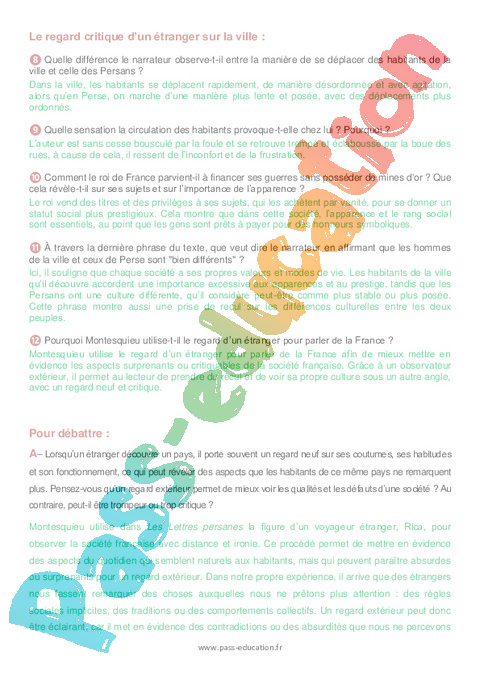 Correction Questionnaire Les Lettres persanes, Montesquieu, 1721 : 2eme Secondaire pdf