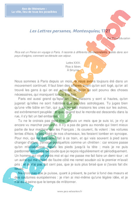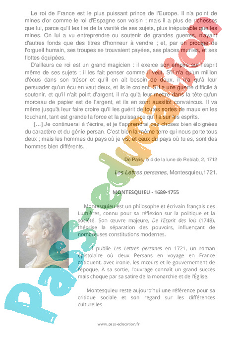 Littérature Les Lettres persanes, Montesquieu, 1721 : 2eme Secondaire rtf
