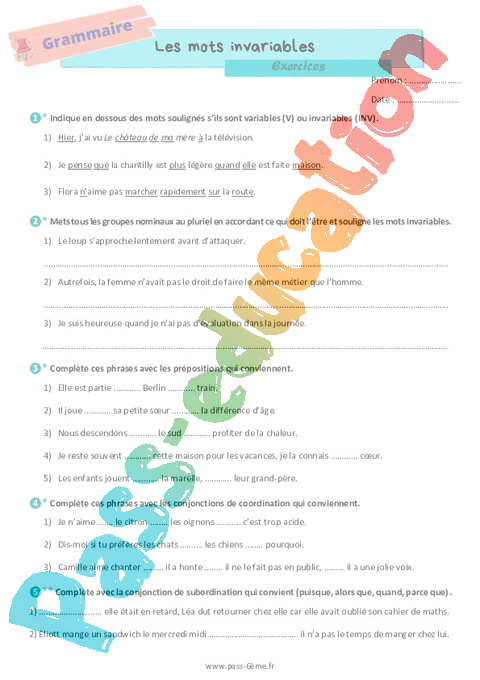 Exercices 6ème Les mots invariables pdf