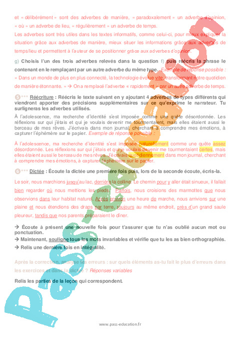 f) Relève trois adverbes de types différents. Pour chacun, précise le type. Que permettent-ils d’apporter au texte ? ………………………………………………….
