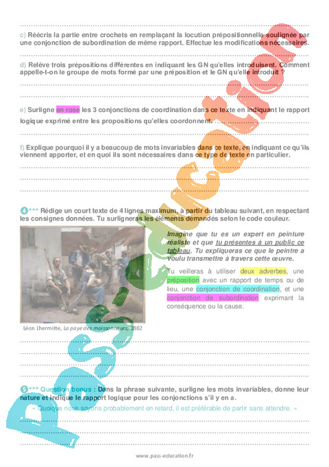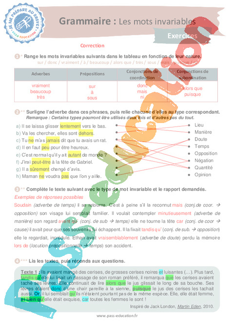 Correction Exercices Les mots invariables : 3eme Secondaire pdf