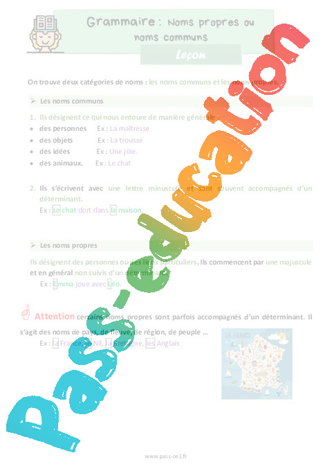 Les noms propres et noms communs : 2eme Primaire – Carte mentale pdf