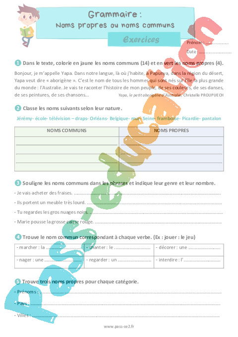 Exercices : 3eme Primaire Noms propres ou noms communs pdf