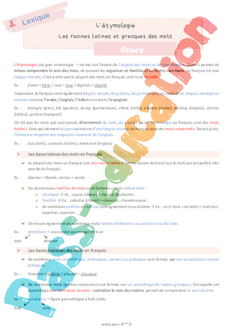 Cours de vocabulaire sur les racines latines et grecques en français en 6ème.