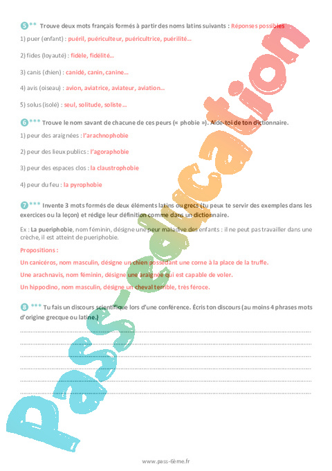 Correction Les racines latines et grecques en français – Exercices de vocabulaire 6ème pdf
