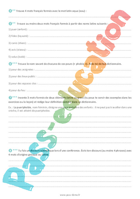 Les racines latines et grecques en français – Exercices de vocabulaire 6ème pdf