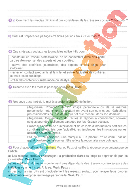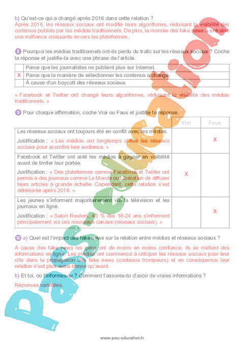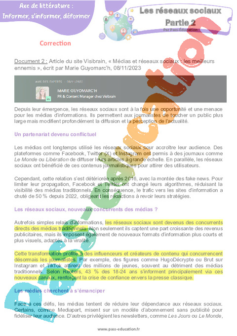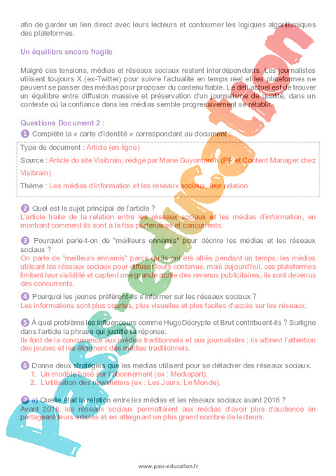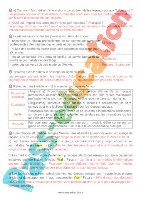 Correction Littérature + Questionnaire Partie 2 Les réseaux sociaux pdf