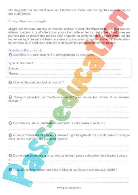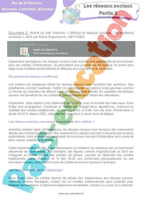 Littérature + Questionnaire Partie 2 Les réseaux sociaux pdf