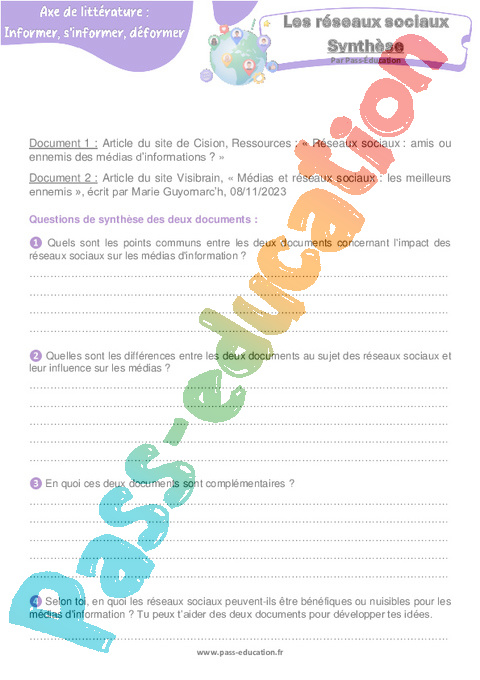 Synthèse Littérature : 2eme Secondaire Les réseaux sociaux pdf