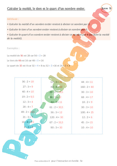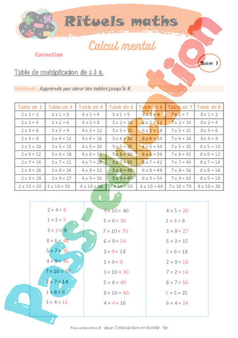 Correction Rituels-maths-calcul-mental IEF – école à la maison : 1ere Secondaire pdf