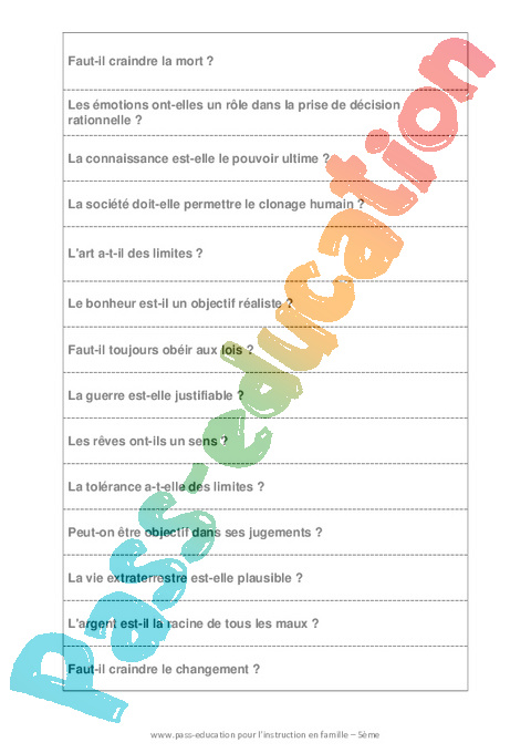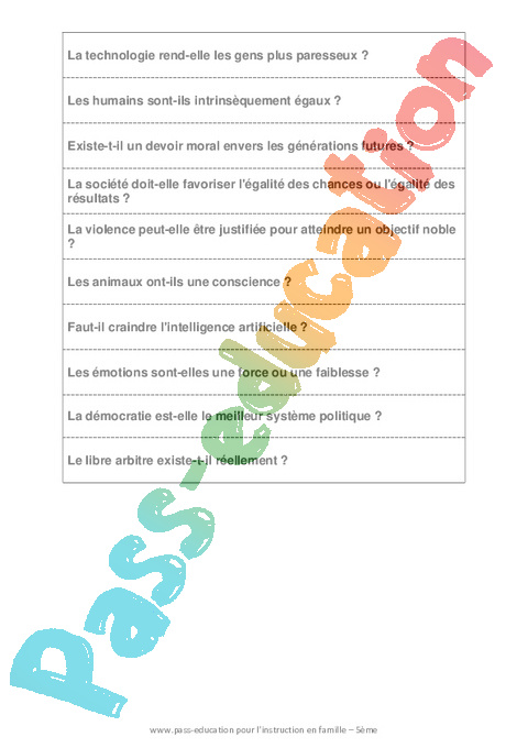 Ces bandelettes sont à découper, rouler et mettre dans une boîte. Votre enfant piochera un papier un matin de la semaine pour démarrer le rituel de français en produisant de l’écrit. Rappel : Le débat philosophique doit d’abord commencer par une réflexion individuelle puis une discussion avec le parent. Les arguments doivent être expliqués et justifiés.