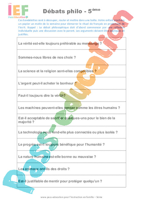 Débats-philo-IEF IEF – école à la maison : 1ere Secondaire pdf
