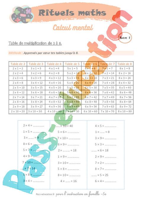 Rituels-maths-Calcul-mental IEF – école à la maison : 1ere Secondaire pdf