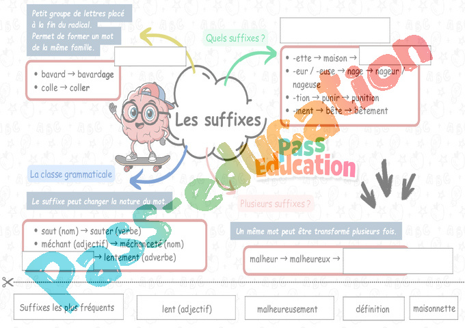Les suffixes : 3eme Primaire – carte mentale à construire pdf