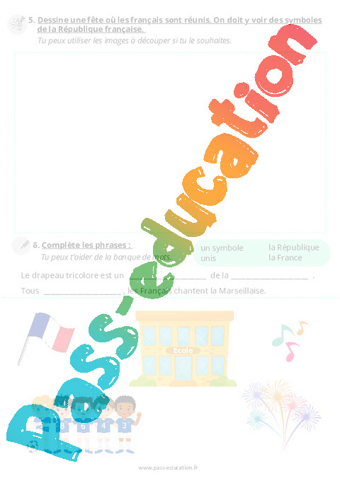 6 Fiche évaluation : 1ere Primaire Le drapeau et l’hymne – Les symboles de la République pdf