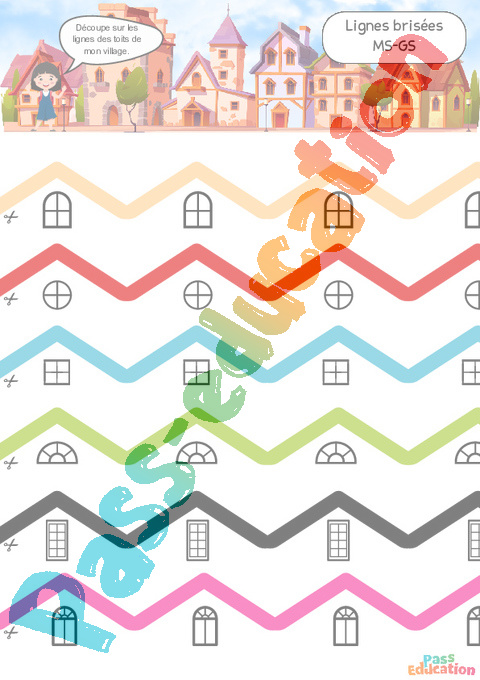 Les toits – Lignes brisées – S’entraîner à découper pour mieux maîtriser le geste graphique, un premier pas vers l’écriture en : 2eme, 3eme Maternelle .