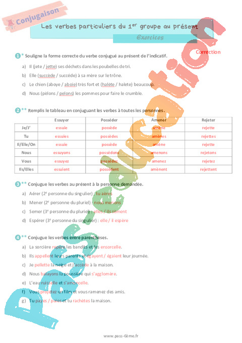 Correction Exercices Les verbes particuliers du 1er groupe au présent 6ème pdf