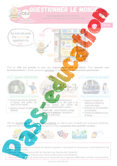 5 Trace écrite : 3eme Primaire L’espace est organisé de l’école à la ville pdf