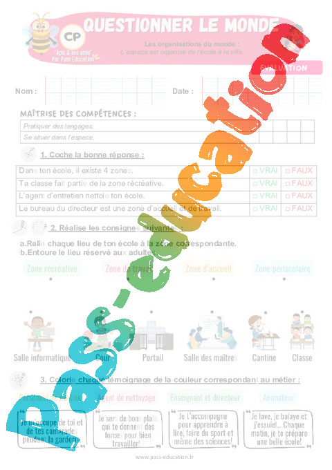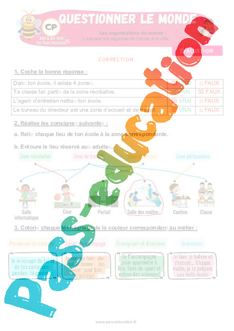 6.1 Correction Evaluation : 1ere Primaire L’espace est organisé de l’école à la ville pdf