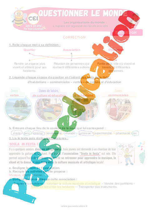 6.1 Correction Evaluation : 2eme Primaire L’espace est organisé de l’école à la ville pdf