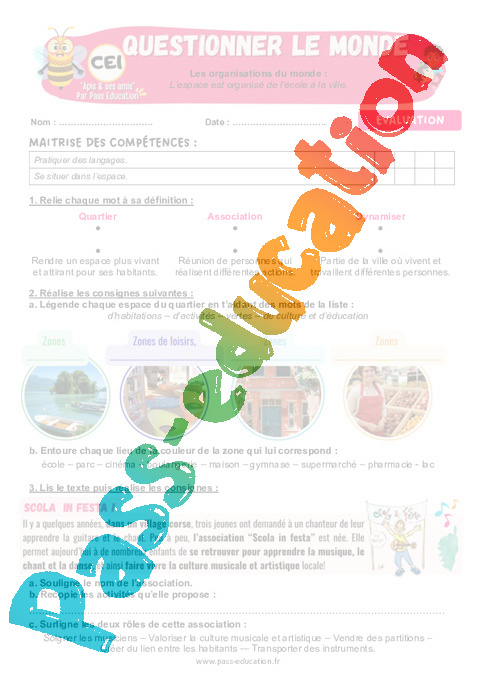 6 Evaluation : 2eme Primaire L’espace est organisé de l’école à la ville pdf