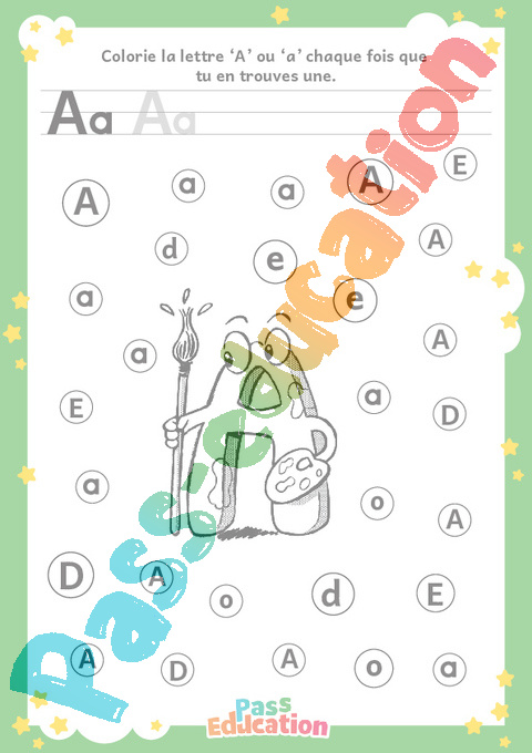 Colorie la lettre ‘A’ ou ‘a’ chaque fois que tu en trouves une.