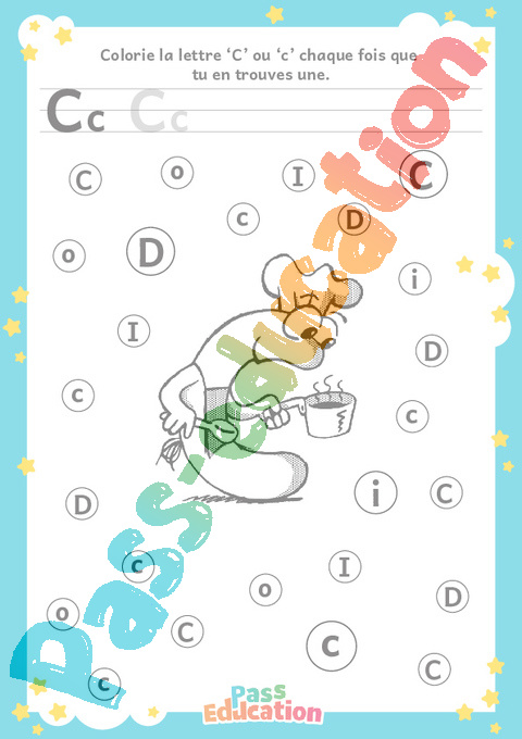 Colorie la lettre ‘C’ ou ‘c’ chaque fois que tu en trouves une.